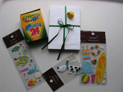 I also made two little pencil cases as well. My friend lives in San Francisco so I am sending him to Japantown to buy fun pens, pencils, and stickers as the real treat. When I was little, I used to love little bags, pens and stickers so much. I am hoping the little girls will be excited to open up the bag and find all kinds of cool things to play with.