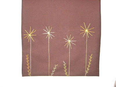 One of my favorite little friends is turning four years old today. I did a lot of good thinking and decided that what every little girl needs is her own tote bag for carrying very important stuff. I was also inspired by some amazing thread I picked up on a lunch time field trip to the Garment District. The yellow thread is painted so it changes from very light butter yellow to a deep daffodil color. I kept thinking about how it would look on chocolate brown fabric and then the light bulb went off.