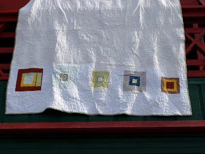 A good friend of mine is getting married this summer on Cape Cod. When I got the news of her engagement, I immediately started thinking about making the happy couple a quilt for their gift. The colors are inspired by the sun, sand, sky and water – all the great colors of summer. The design is loosely inspired by two of Denyse Schmidt’s quilts. I am so happy with the way it turned out – it really looks like summertime to me.