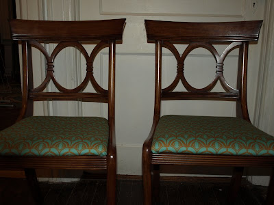 After going two weekends without doing any crafting or sewing, I have been making up for lost time like a maniac this week. It is pretty exhilarating to be checking off projects from my to-do list. This evening’s adventure involved recovering my chairs with some new fabric from Anna Maria Horner’s new Drawing Room line of fabric.