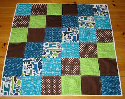 We have some wonderful friends in Amsterdam who are expecting a little baby boy any day now. I wanted to make the little guy something special and settled on a new variation of the last quilt I made. It is such an easy pattern and great for using up smaller pieces from my stash. The possibilities are endless on this style.