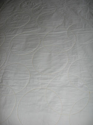 Update: I should explain the circles a little better. After sewing the three layers together and turning them right side out, I secured the layers together with quilting pins. Once everything was nice and flat, I took a tupperware lid and traced it with a disappearing ink marker. I traced about 5 circles, then just followed the lines on my machine with my walking foot very slowly. I then traced more circles and repeated the process until I thought there were enough. After I was finished with the circles, I top stitched the border to help hold everything down.