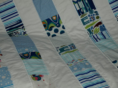 I also decided to get a little fancy with the back rather than my standard all white and pieced some blue and white together. I varied the widths of the blue pieces to make things interesting and my husband assured me that I did not inadvertently replicate the Greek flag.