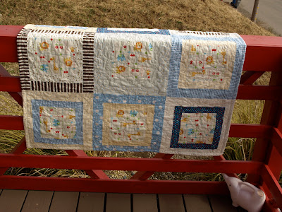 This will go off in the mail on Monday to my new little friend in Brooklyn. Hopefully it will keep her warm this winter or at least provide a fun and colorful place for tummy time.