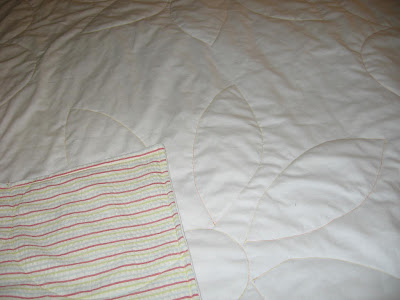 When I bought the Fishies, I also picked up a fun peachy colored seersucker. I am going to try something similar with that one to see if the textured seersucker will show off the quilting better. Wish me luck. Good thing there are twins waiting for quilts in Californina to keep me motivated.